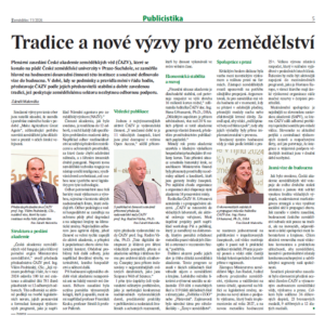 V odborném týdeníku Zemědělec (č. 11/2026) vyšel článek věnovaný plenárnímu zasedání členů České akademie zemědělských věd (ČAZV), které se uskutečnilo dne 3. března 2026 v prostorách České zemědělské univerzity v Praze.