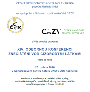 Česká akademie zemědělských věd (ČAZV) se prostřednictvím svého Odboru rostlinolékařství podílí na pořádání XIV. odborné konference „Znečištění vod cizorodými látkami“, která se uskuteční dne 23. dubna 2026 v Kongresovém centru hotelu UNO v Ústí nad Orlicí. Konferenci organizuje Česká společnost rostlinolékařská, pobočka Ústí nad Orlicí, ve spolupráci s ČAZV. Akce je určena odborníkům ze státní správy, zemědělské praxe, rostlinolékařské péče, vodního hospodářství i dalším zájemcům o problematiku ochrany životního prostředí.